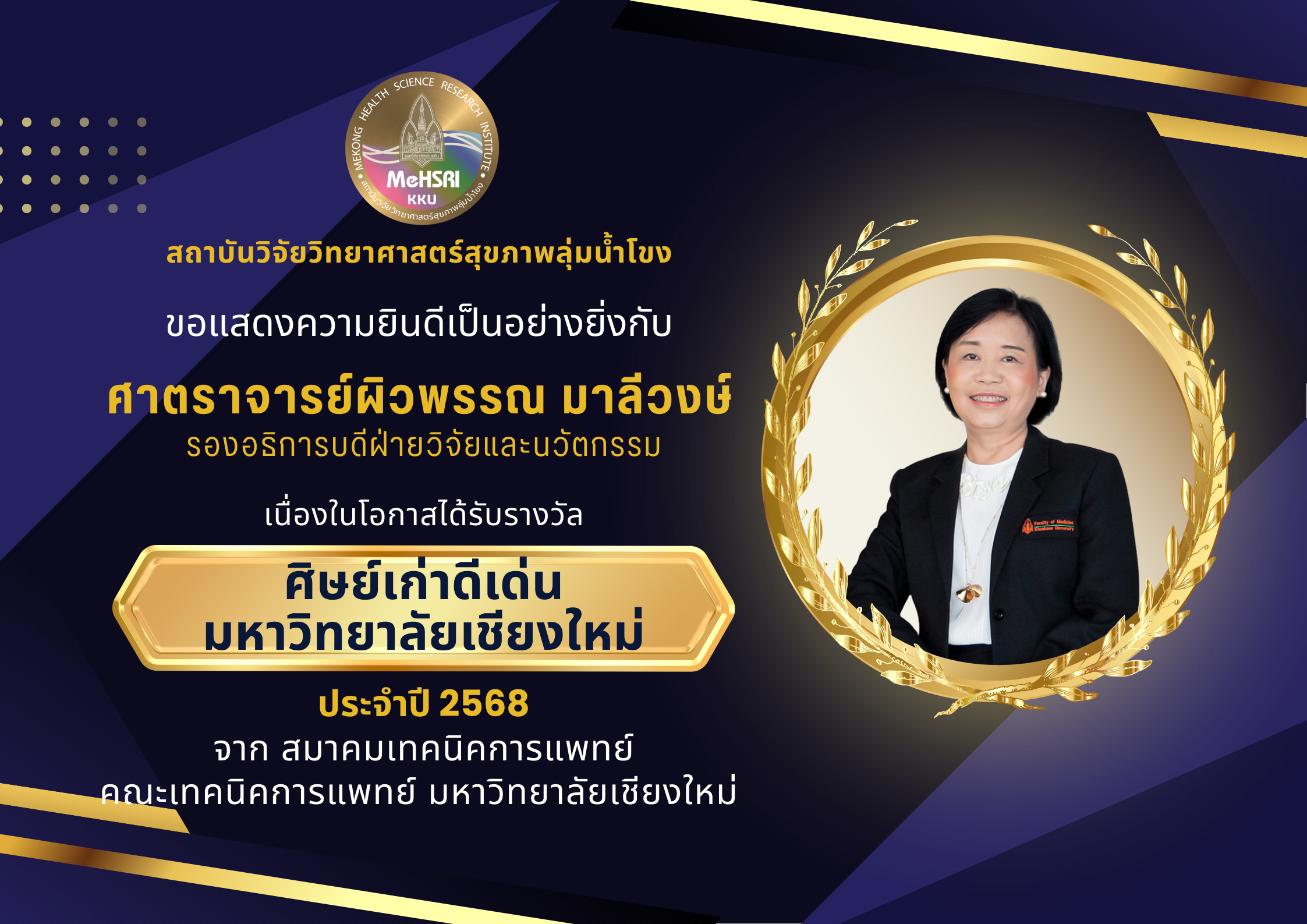 ในโอกาสได้รับ รางวัลอันทรงเกียรติ จาก สมาคมศิษย์เก่าคณะเทคนิคการแพทย์ มหาวิทยาลัยเชียงใหม่ ประจำปี 2568